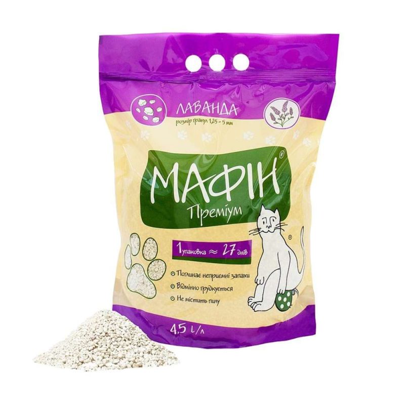 Бентонитовый наполнитель для кошачьего туалета Мафин Премиум с ароматом лаванды 4.5 л — надёжная чистота и свежесть для вашего питомца