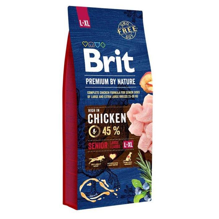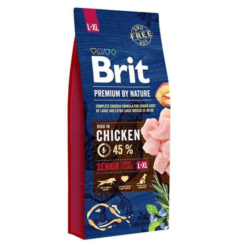 Сухой корм для пожилых собак крупных и гигантских пород Brit (Брит Сеньор) Premium Dog Senior L+XL, с курицей имеет отличный вкус, а также обеспечивает повседневную активность и хорошее самочувствие.