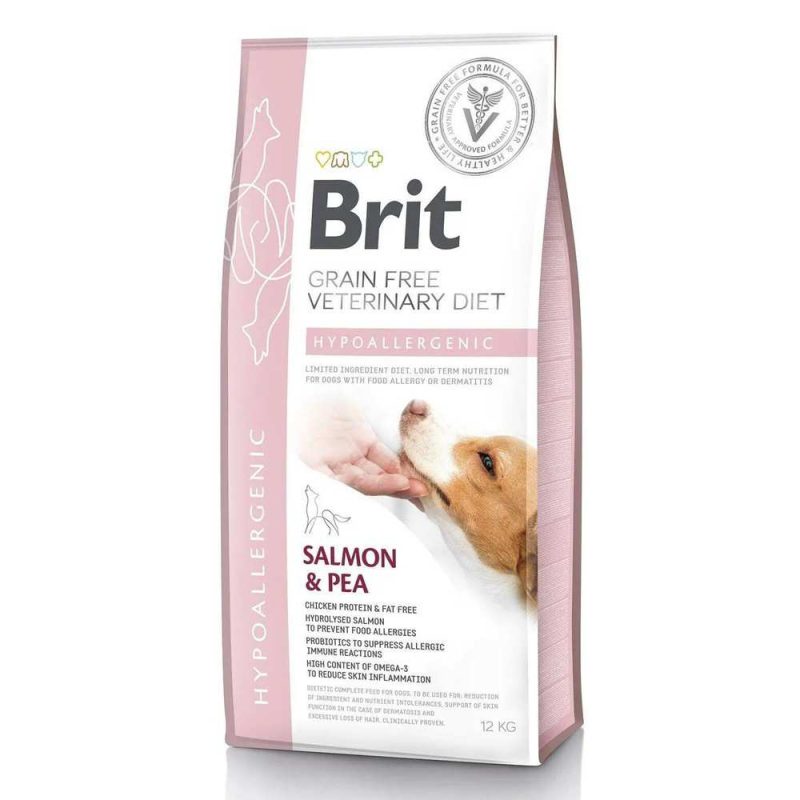 Brit Veterinary Diet Hypoallergenic Dog Salmon 12 кг — оптимальный выбор для владельцев, которые планируют купить сухой корм для собак с пищевой аллергией для поддержания здоровья, комфортного пищеварения и полноценного ежедневного рациона питомца.