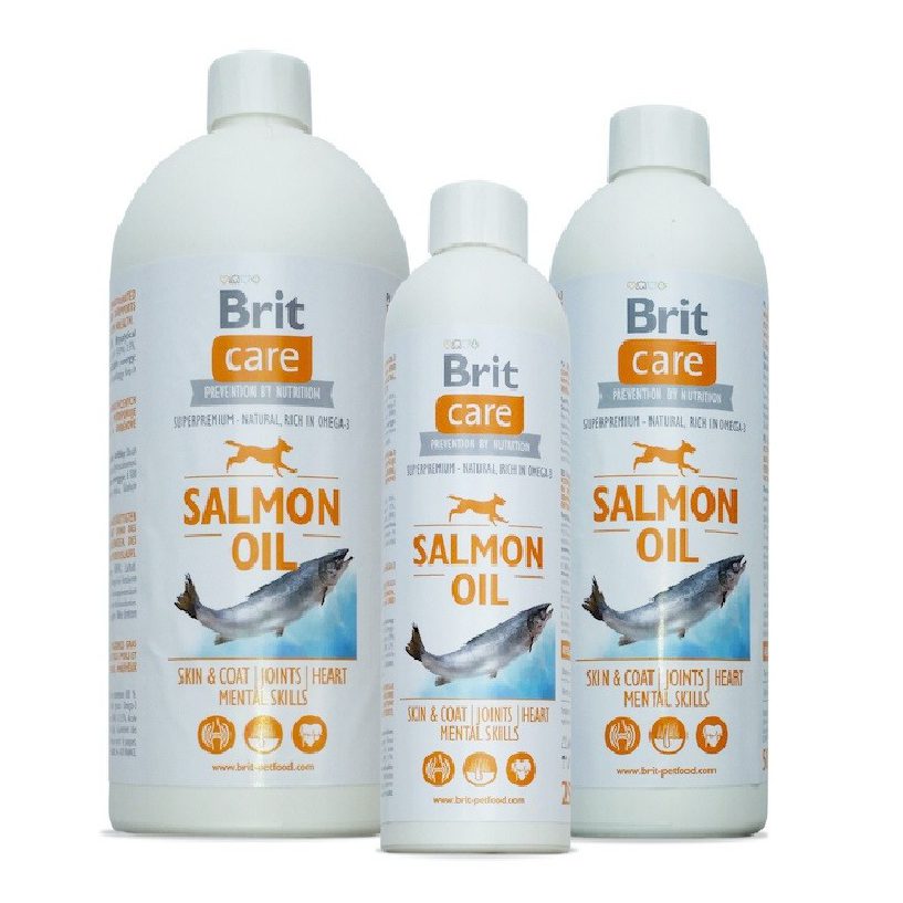 Масло лосося Brit Care 1 л — пищевая добавка для собак всех пород, источник омега-3 и омега-6 жирных кислот для здоровья кожи, шерсти и суставов.