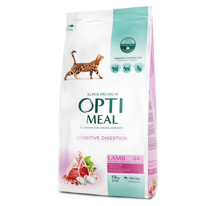 Optimeal Lamb Sensitive 10 кг — гипоаллергенный сухой корм с ягненком для кошек с чувствительным пищеварением
