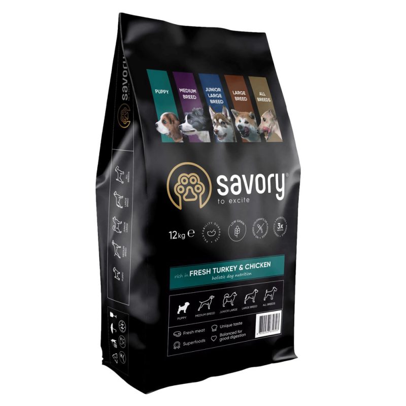 Savory Puppy Turkey & Chicken 12 кг — сухой корм для щенков с индейкой и курицей