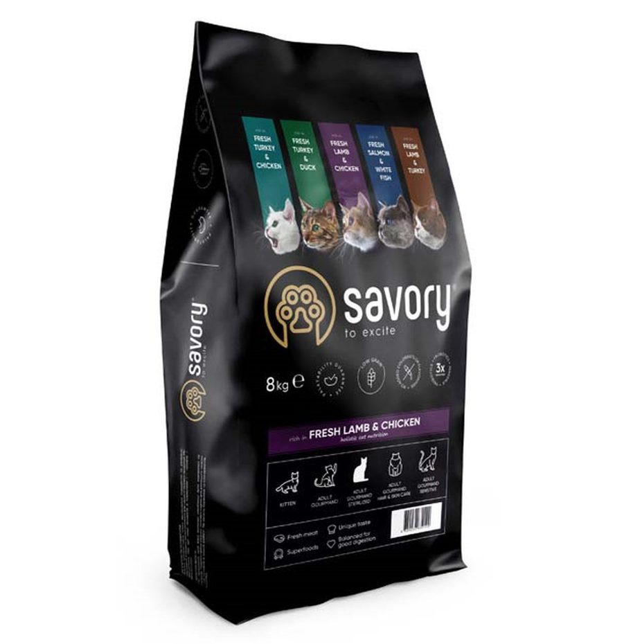 Savory Adult Cat Sterilised Lamb & Chicken 8 кг — сухой корм для стерилизованных кошек с ягнёнком и курицей