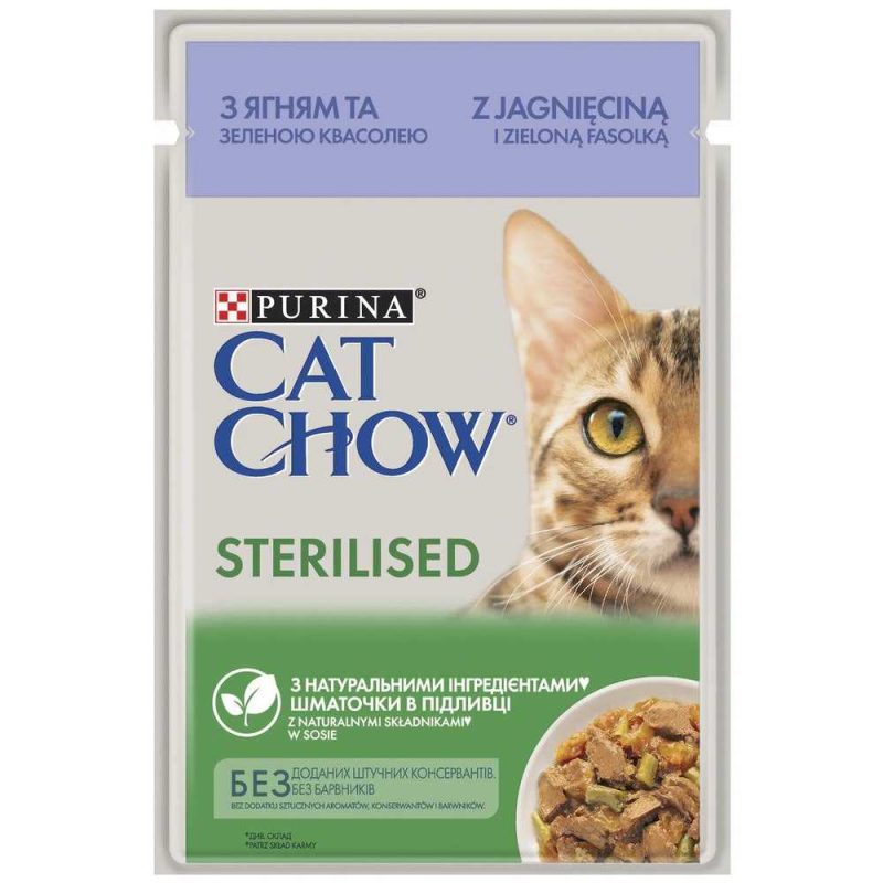 Влажный корм Cat Chow Sterilised с ягнёнком и зелёной фасолью 26×85 г — контроль веса и забота о здоровье стерилизованных кошек
